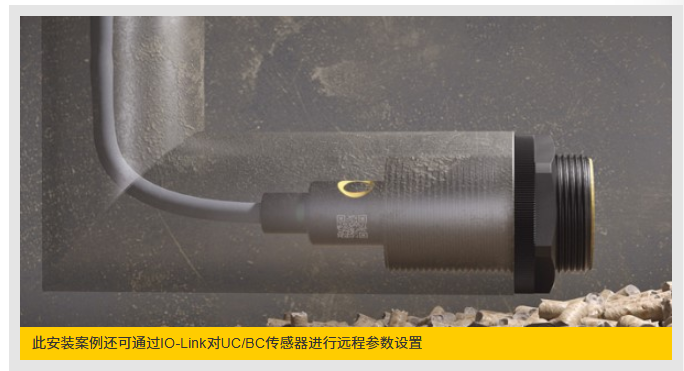 此安裝案例還可通過IO-Link對UC/BC傳感器進(jìn)行遠(yuǎn)程參數(shù)設(shè)置由于吸料室內(nèi)會堆積形成錐體,因此在中心位置檢測料位防護(hù)等級高達(dá)IP67,不懼粉塵問題此安裝案例還可通過IO-Link對UC/BC傳感器進(jìn)行遠(yuǎn)程參數(shù)設(shè)置由于吸料室內(nèi)會堆積形成錐體,因此在中心位置檢測料位