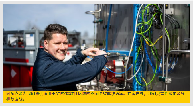 概念開(kāi)發(fā)期間進(jìn)行密集咨詢 因此,Resato為了其儲(chǔ)氫單元與圖爾克專家合作開(kāi)發(fā)了分散式I/O概念?!皥D爾克真的是很好的合作伙伴。我們沒(méi)有隨隨便便開(kāi)發(fā)產(chǎn)品,而是就產(chǎn)品進(jìn)行了深入交流,并考慮了不同的可能性。圖爾克甚至推薦了最合適我們的線纜類型以及長(zhǎng)度?!毖邪l(fā)工程師Niels de Jong解釋道?!拔覀冃枰獔D爾克這樣的合作伙伴”。I/O概念完全分散實(shí)施-例如ATEX 0區(qū)和1區(qū)的本質(zhì)安全傳感器信號(hào)。通過(guò)IMC系列設(shè)備,圖爾克提供IP67特殊接口模塊。這些模塊連接在防爆傳感器(或執(zhí)行器)和I/O設(shè)備之間,安全地隔離電路并轉(zhuǎn)換信號(hào)電流。甚至安全相關(guān)信號(hào)也會(huì)分散到IP67 I/O模塊TBPN上,TBPN通過(guò)Profisafe協(xié)議與安全控制器通信。