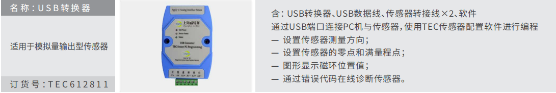 名 稱 :USB轉(zhuǎn) 換 器 適?于模擬量輸出型傳感器 訂 貨 號(hào) :TEC612811