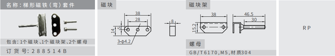 名稱 :梯形磁鐵( 彎 )套件 訂貨號:288514B 包含:1個磁塊 、1個磁塊架 、2個螺?