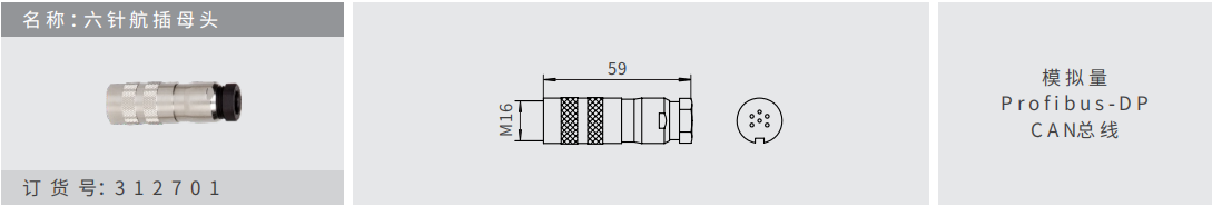 名稱 :六針航插?頭 訂貨號:312701