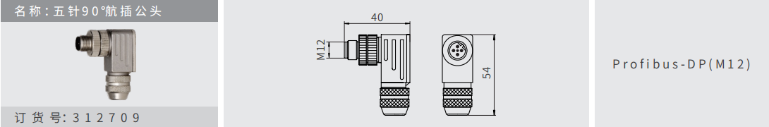 名稱 :五針9 0 °航插公頭 訂貨號(hào):312709