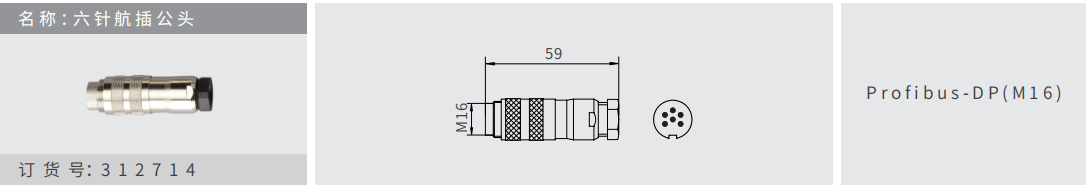 名稱 :六針航插公頭 訂貨號(hào):312714