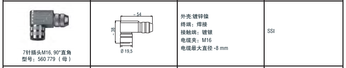 7針插頭M16, 90°直角 型號:560 779(母)