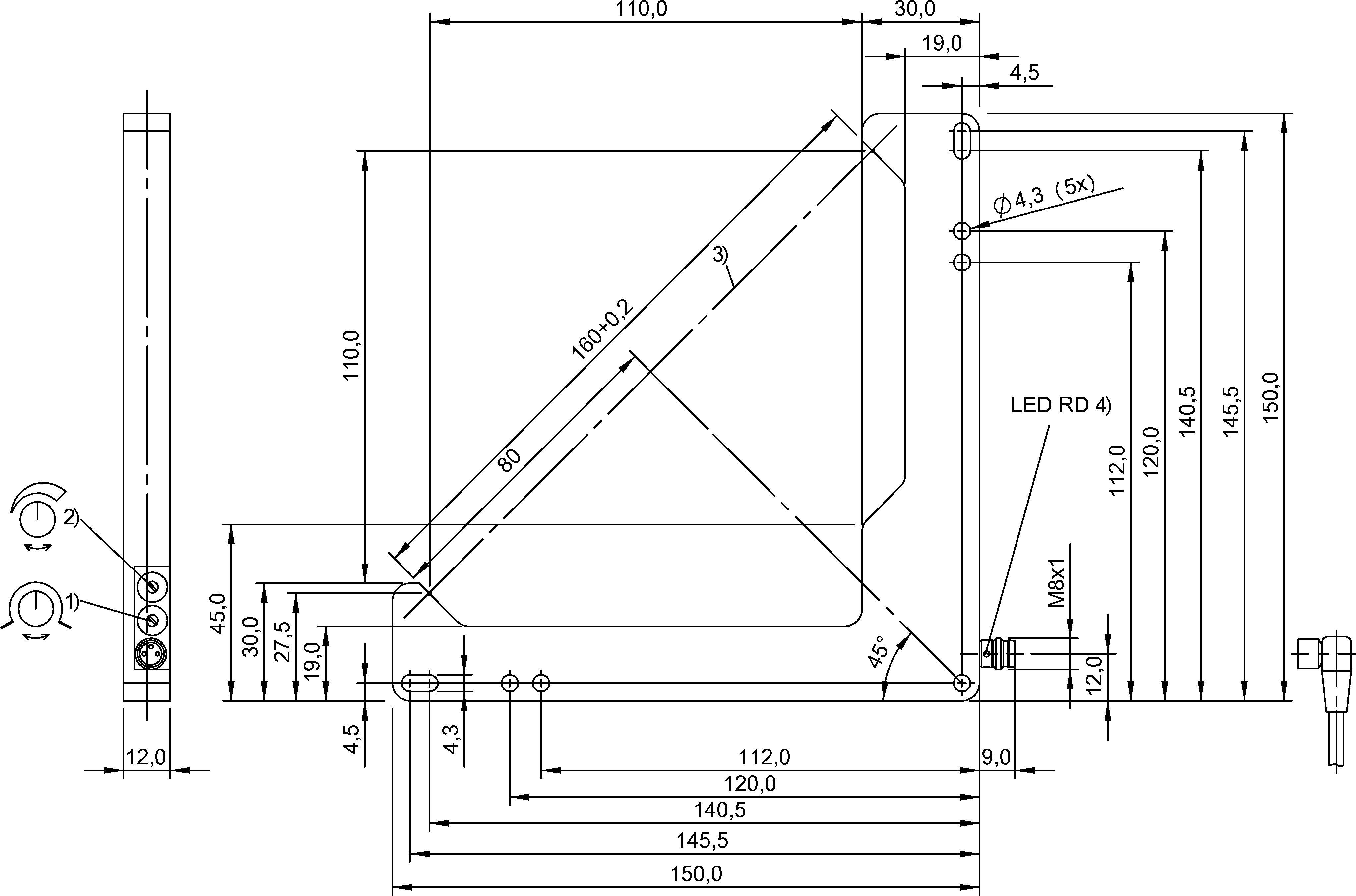 Ue下的最大無負(fù)載電流 | 20 mA | 接口 | 插接器,M8x1公頭,3針 | |