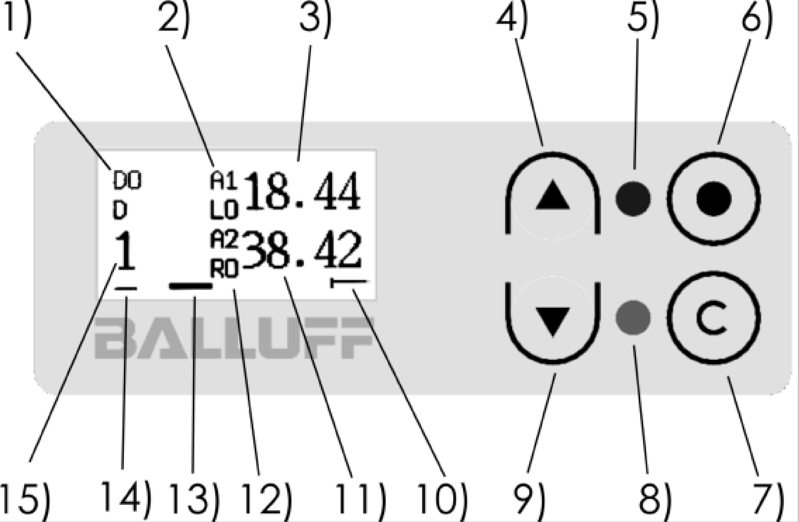 1) 接收器, 2) 顯示和操作區(qū), 3) 發(fā)射器