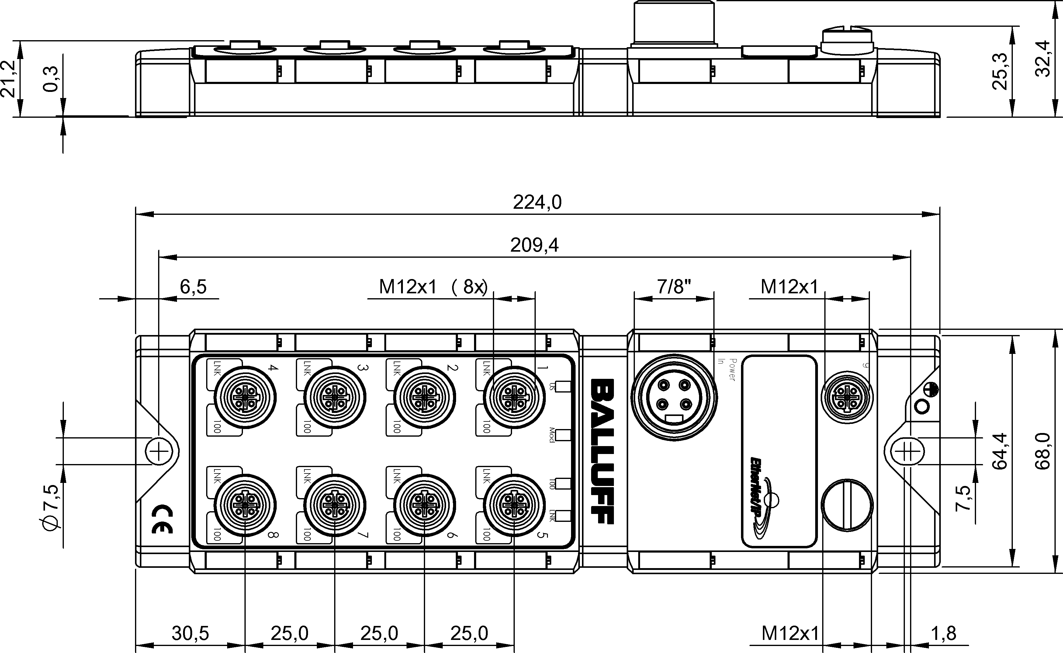 輔助接口 8x以太網(wǎng)/IP 10Base-T/100Base- TX