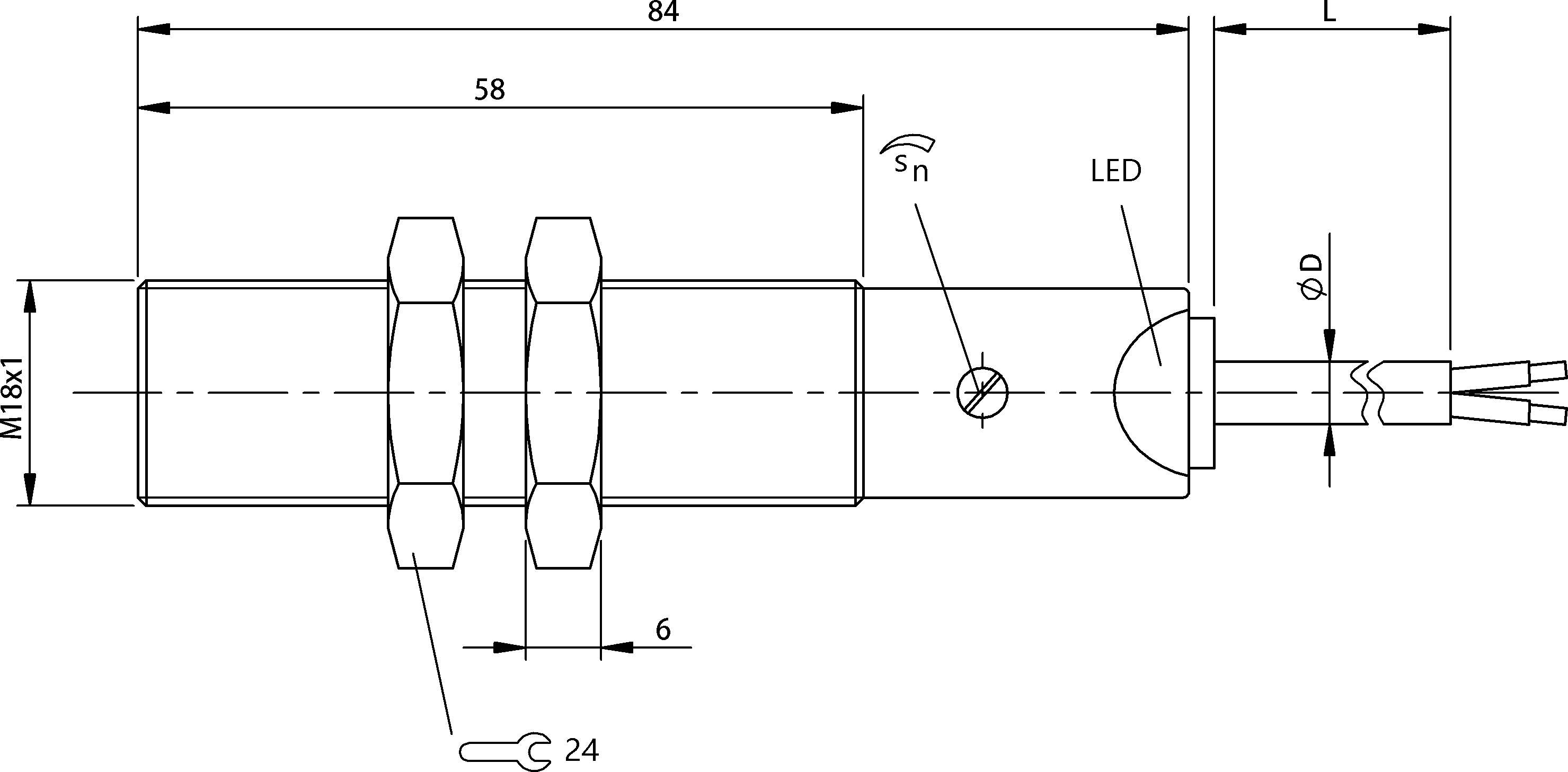 測量范圍 | 0. 6.5 mm | 螺母M18x1 (2x) | ||