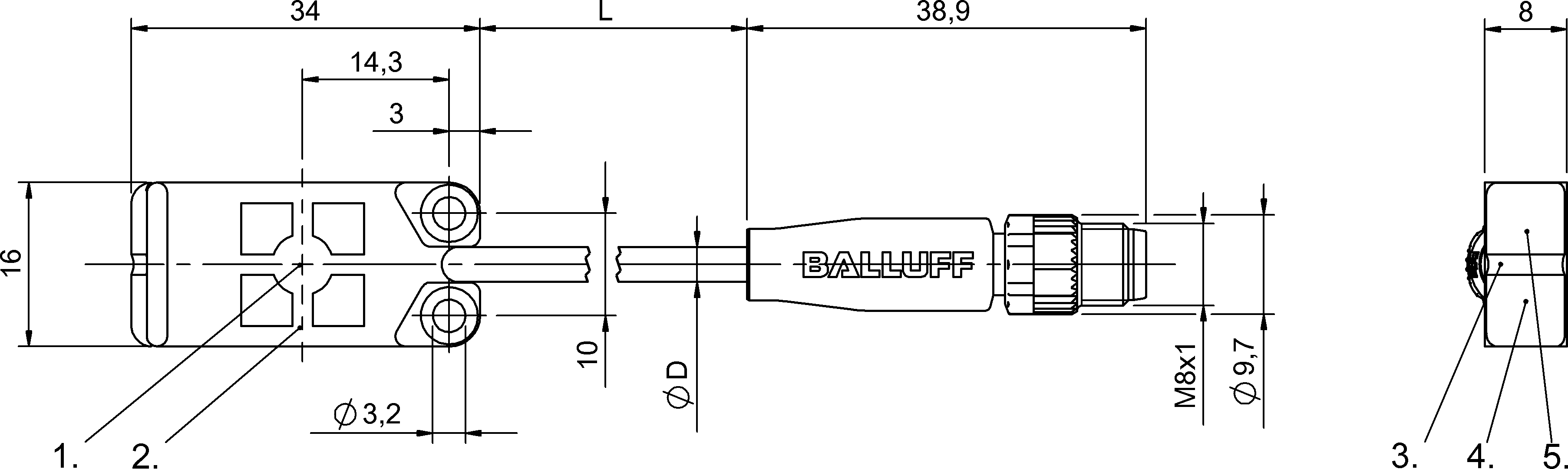最大重復(fù)精度 (Sr的百分比) 測量范圍 溫度漂移,最大 (Sr的百分比) | 5.0 % 1...8 mm 20 % [-5~55 °C] | 供貨范圍 品牌 | 支架 裝配說明 Global | |