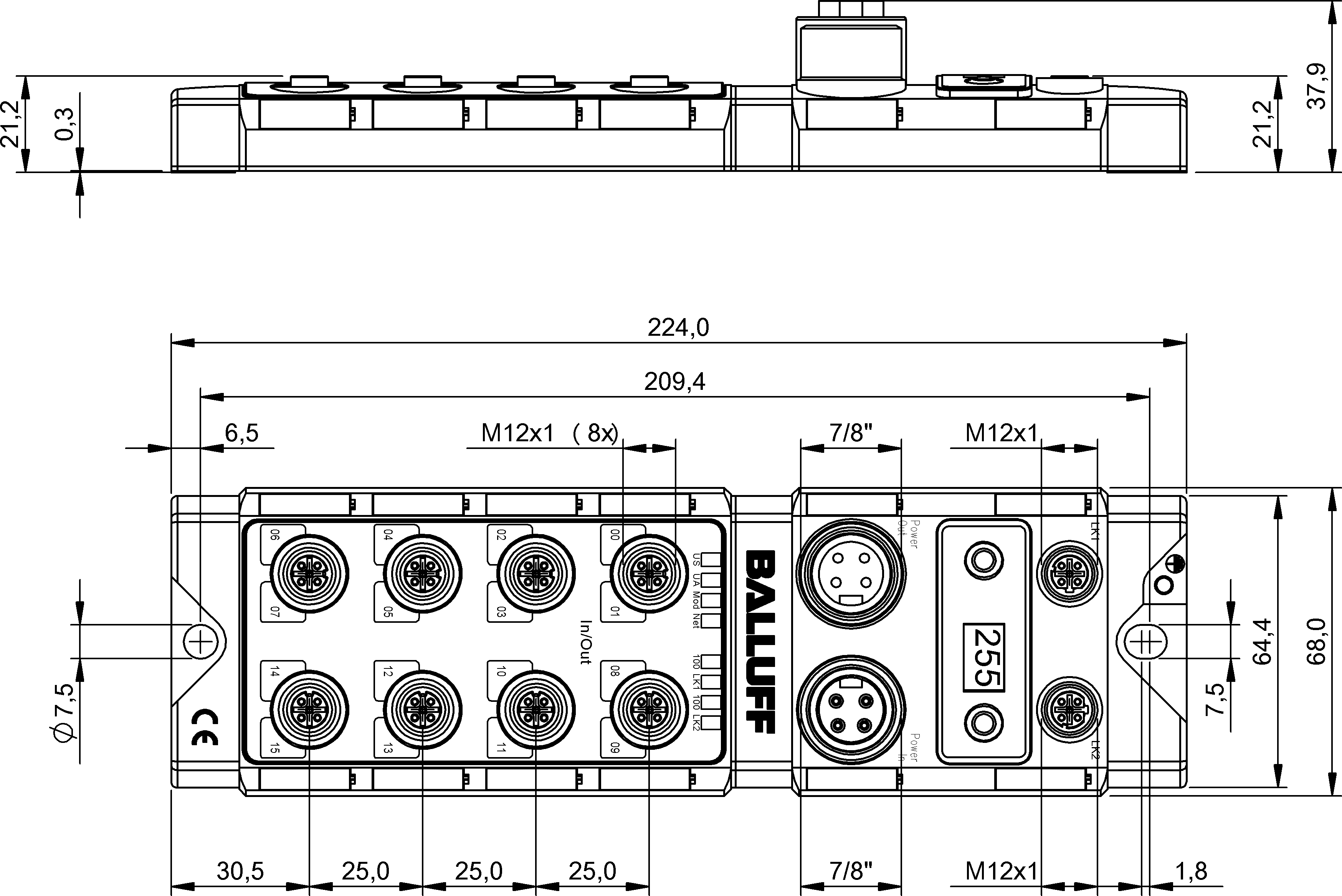 工作電壓Ub 18~30.2 VDC