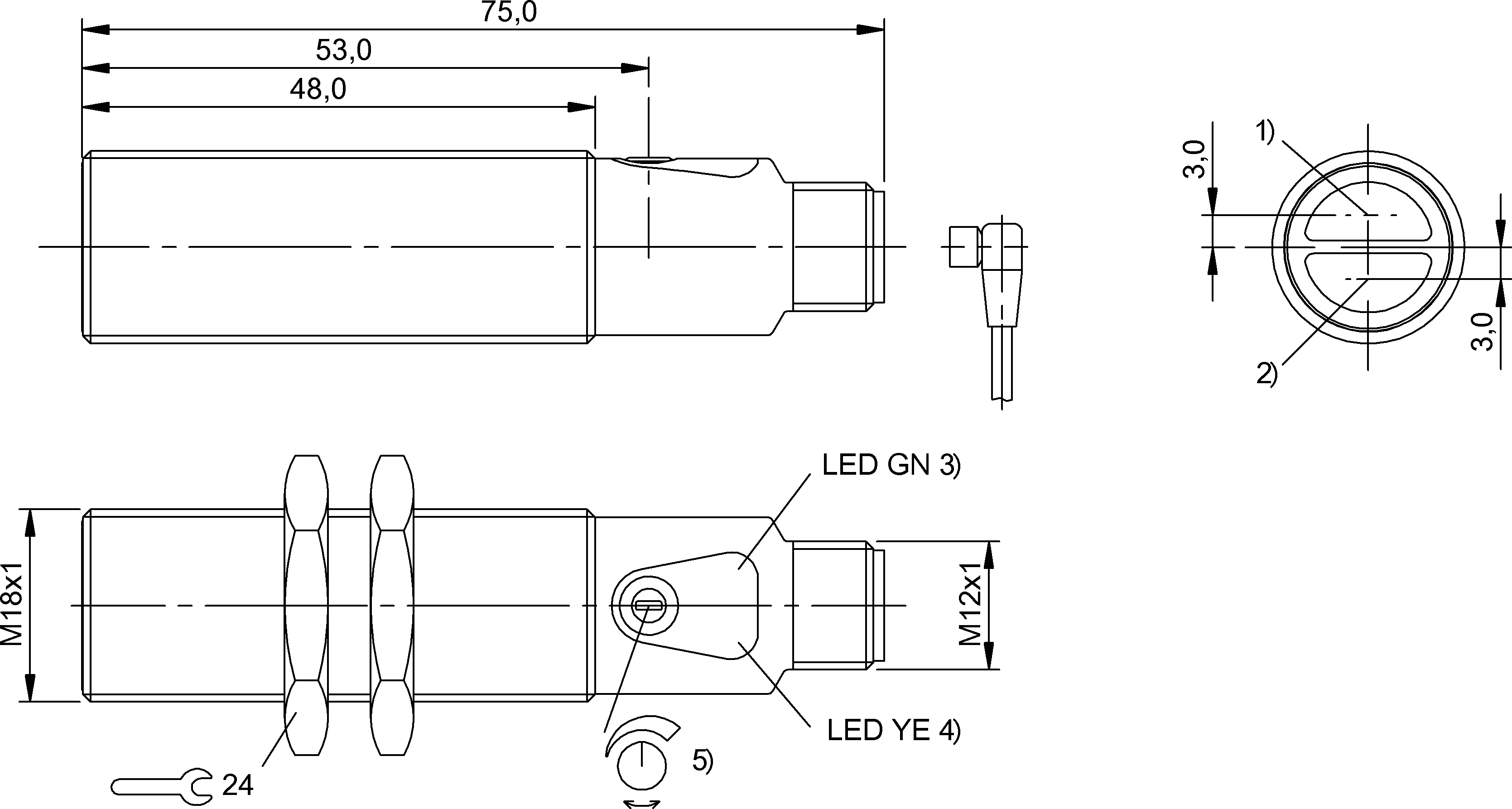 光線類型 | LED,紅光 | 緊固 | 螺母M18x1 | |